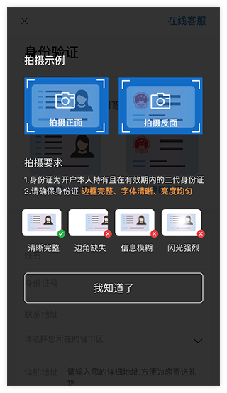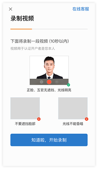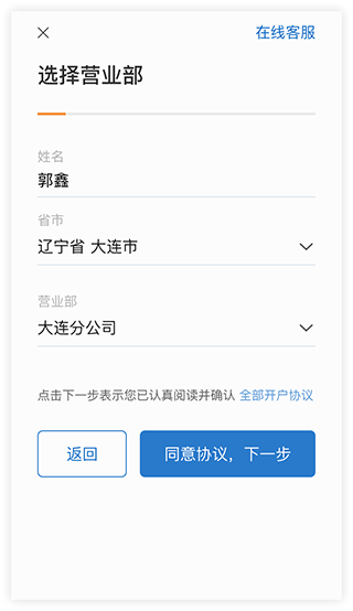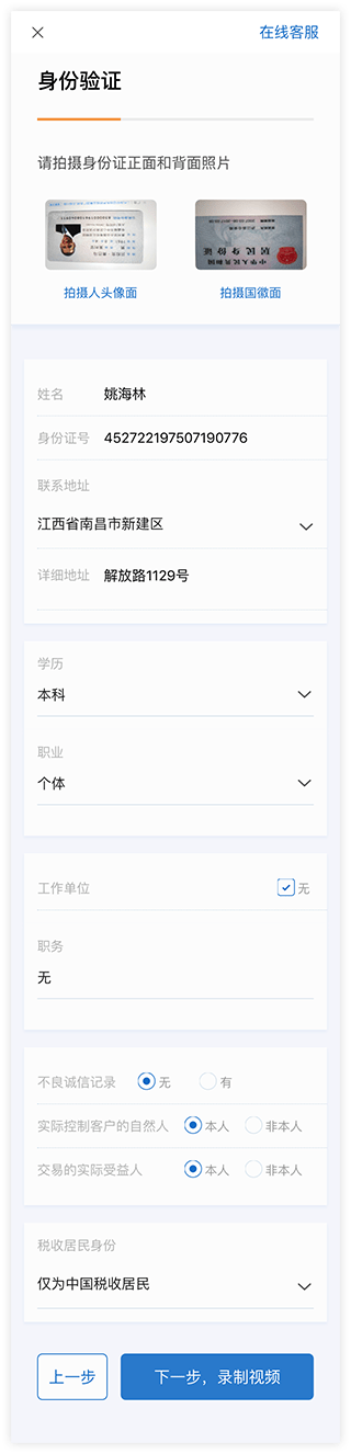 2、录入资料:选择营业部、上传身份证、完善资料、录制视频
