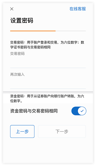 3、选择市场 设置密码:选择开户市场,设置资金交易密码